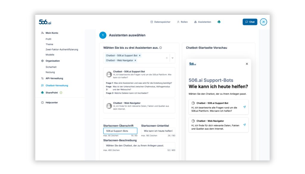 Chatbots erstellen direkt mit 506.ai CompanyGPT