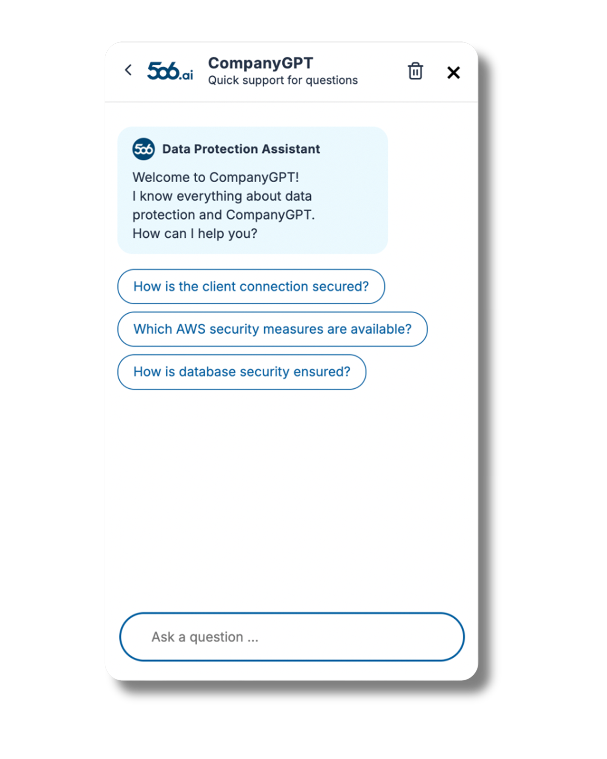 - Use customized data storage solutions with individual access permissions to ensure smooth deployment of your AI across the company.